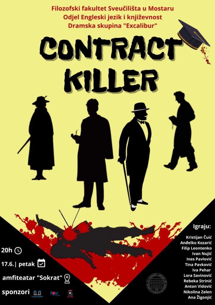 Contract Killer is an original theatrical production fully conceived and developed by students in collaboration with Professor Raguž. The script creatively merges iconic literary figures with contemporary university life, tackling the challenges and absurdities of the academic world.